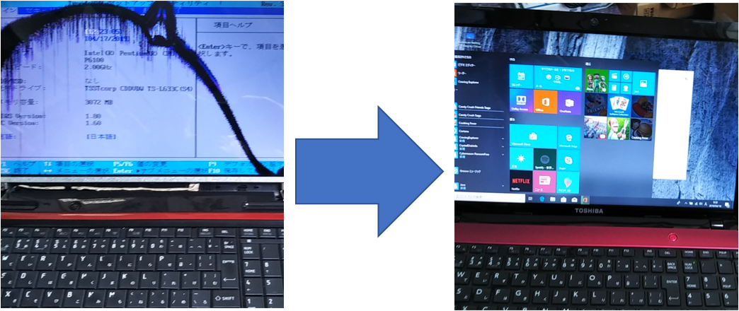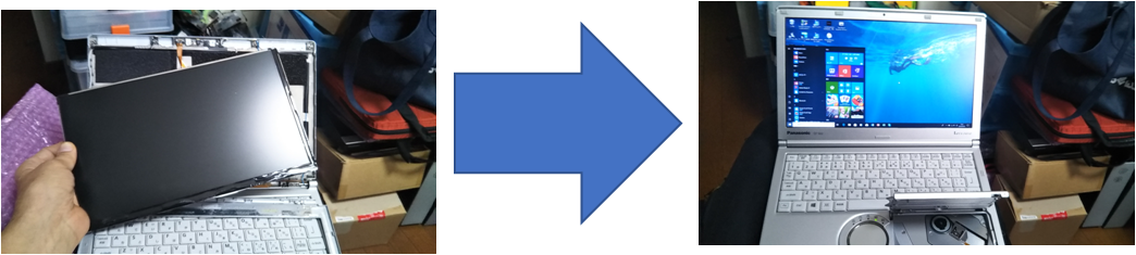 液晶割れにて持ち込み中古の互換液晶パネルを調達し、交換しオーバーホール。